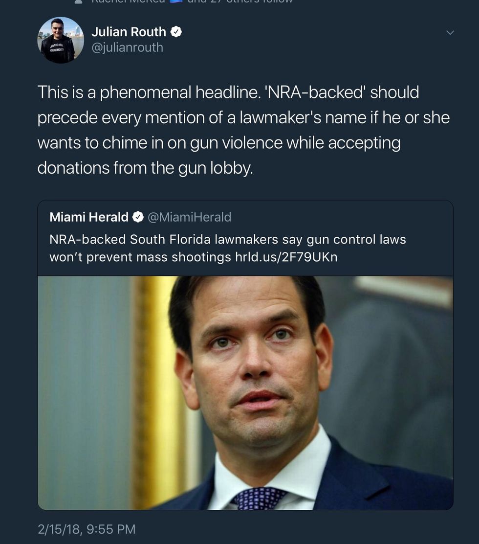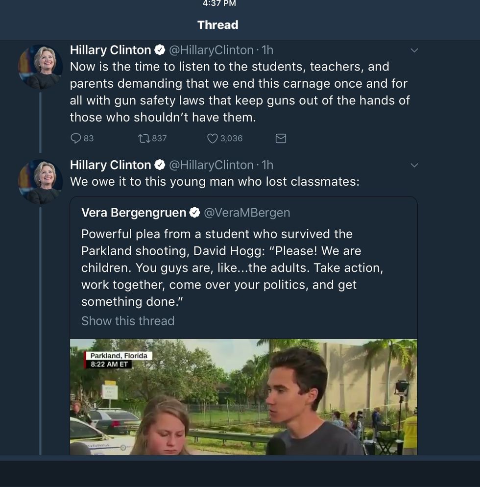 QThe Parkland students took to social media and news broadcasts in ways we've never seen, to tell off the politicians who allow this and to plead for help from the people who should be the “grownups." They shouldn't have to. We should grateful for & awed by them. We should do what they want us to do, and what needs to be done.