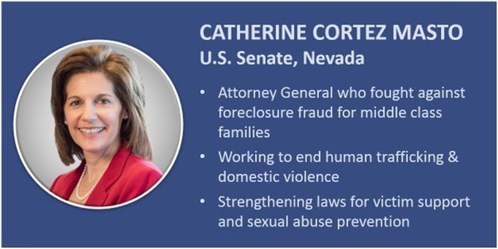 If elected, Cortez Masto would be the first Latina Senator. (Loretta Sanchez, another Latina democratic woman is running in California but she is behind in polls to fellow Democrat, Kamala Harris - see above).
