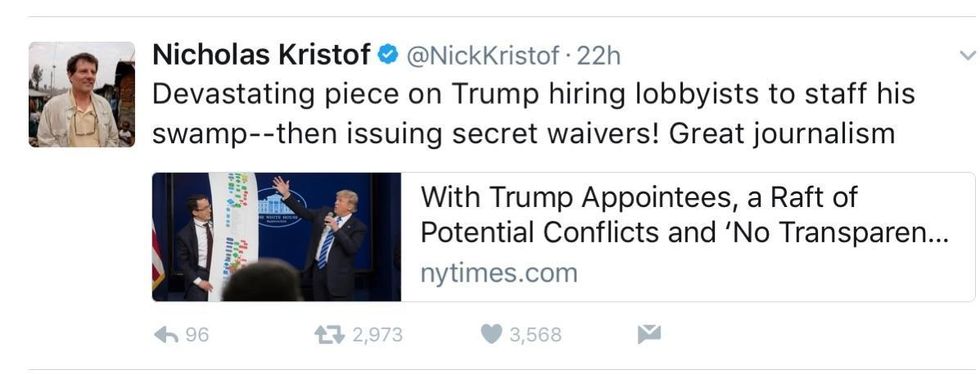 He said that Mr. Trump's own ethics executive order in late January eliminated a requirement, first adopted by President Barack Obama, that executive branch appointees not accept jobs in agencies they recently lobbied. That weakened standards applying to approximately 4,000 executive branch hires.