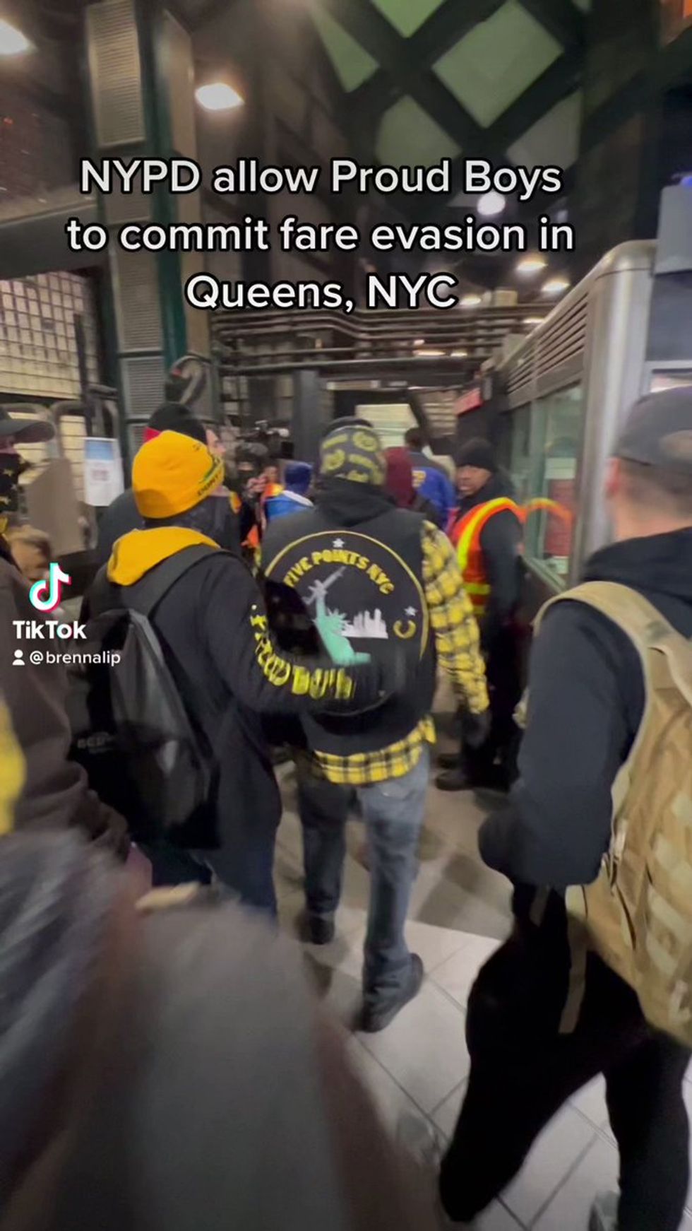 NYPD help Proud Boys commit fare evasion & then tell journalists to go back and pay for the fare. Everyone should see this video. https://t.co/wrkPjFhQoq