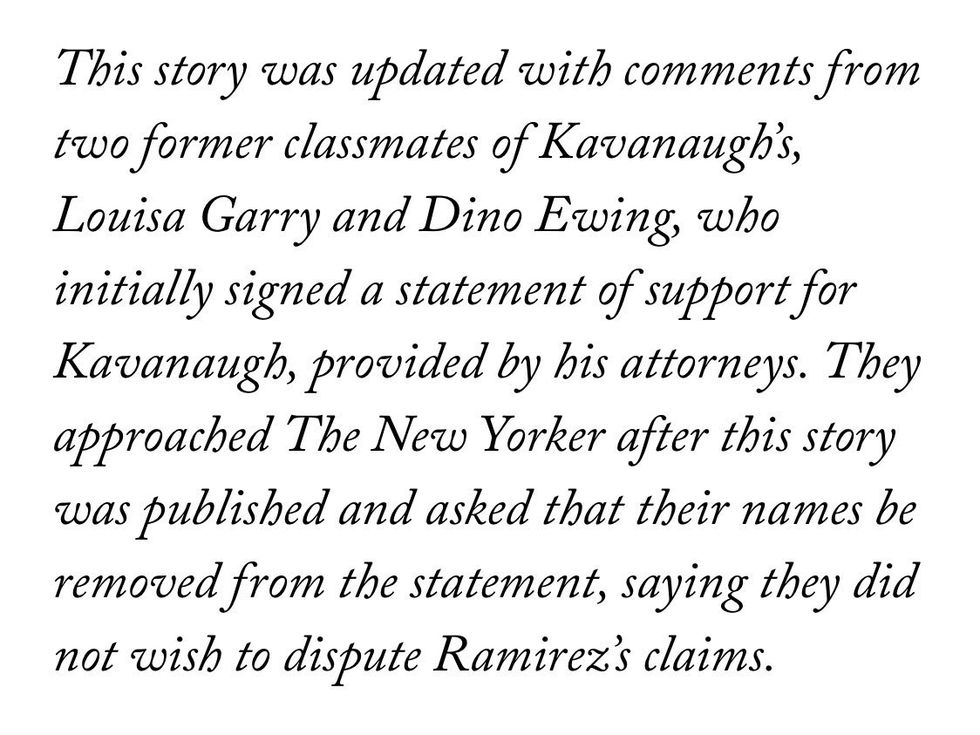 One of Kavanaugh's classmates who removed her name from the statement, Louisa Garry, is the same friend who appears on camera in the Judicial Crisis Network's $1.5 mil ad blitz praising Kavanaugh. https://t.co/X33agxFmHW
