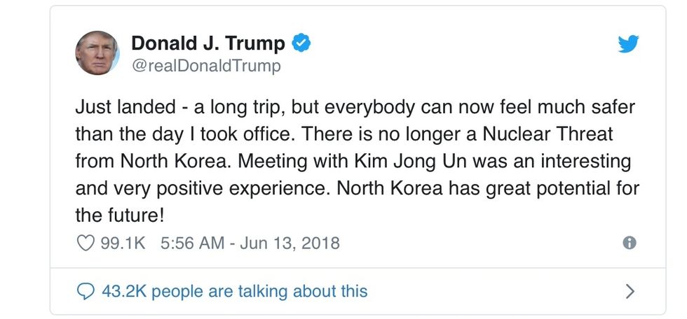 As if that's not enough, Trump declares his love for North Korea's Kim Jong-un, a genuine villain who starves and enslaves his people and executes his enemies with antiaircraft guns and flamethrowers.