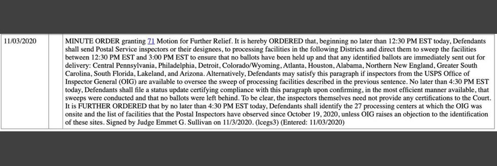 Please read: Judge Emmet Sullivan ORDERED a full “sweep” of postal facilities, ORDERED the delivery of all ballots and ORDERED the “defendants” - that would be Louis DeJoy and company - to certify that “NO BALLOTS WERE LEFT BEHIND.” Let’s remember these words from Judge Sullivan. https://t.co/V2x3xZcMQg