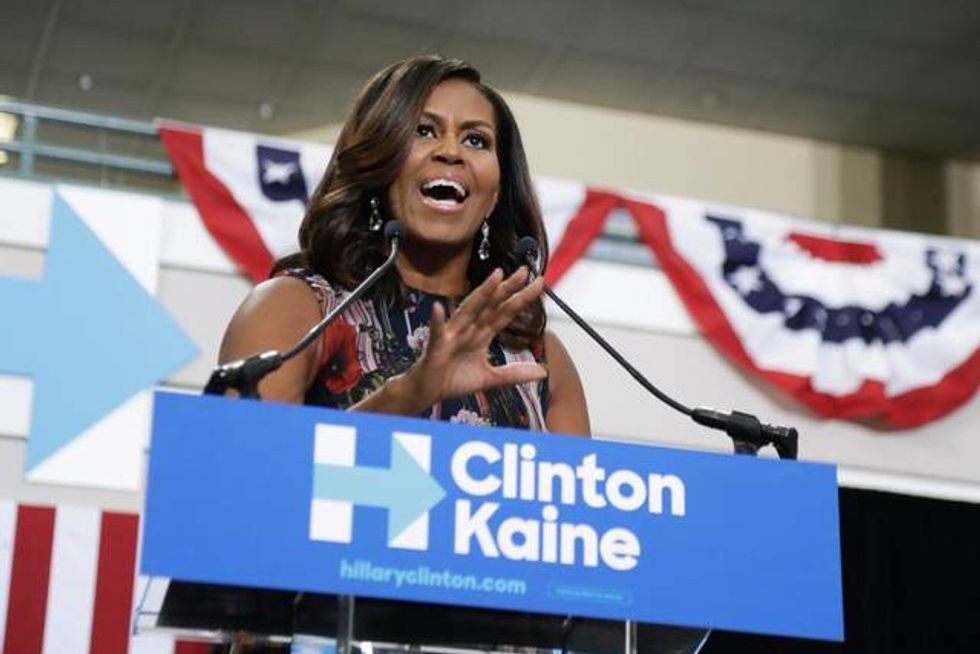 Michelle Obama spoke for Hillary at George Washington University in Virginia on Friday, September 16.