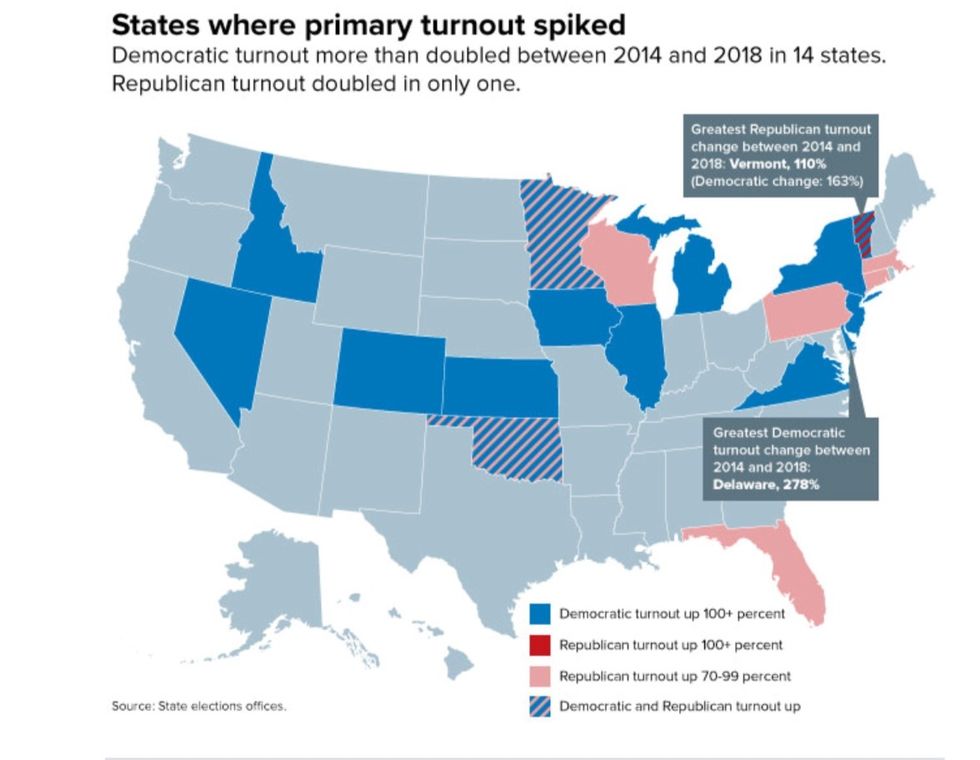Post Script. Primary turnout soars in 2018 with Dems leading charge. Hey, check out the #s. We the People are moving forward, but now, do more! Volunteer. Donate. Get folks registered.Then we all vote November 6. #BlueWave2018 #Midterms2018 #WeVote
