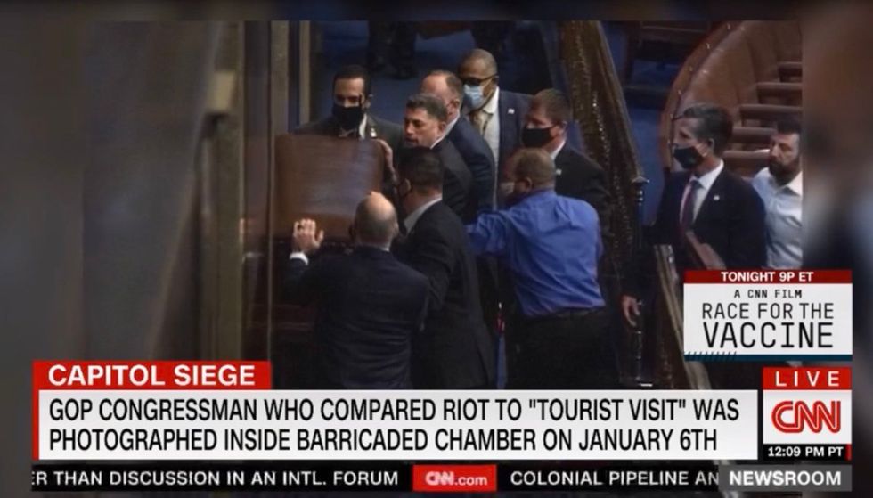 Rep Andrew Clyde helping to barricade the door from the “tourists”. https://t.co/XZ7ct4FrAZ