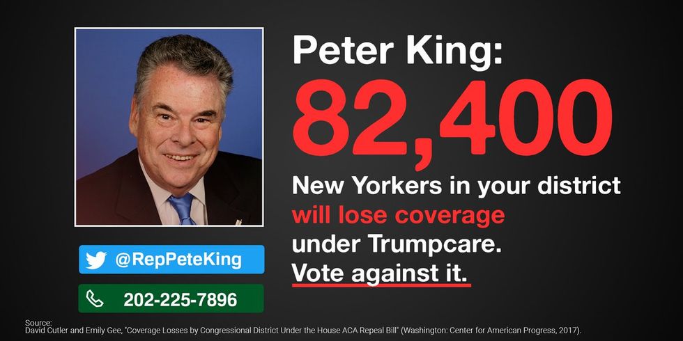 .@RepPeteKing, 82,400 of your constituents would lose coverage under Trumpcare. Stand up and oppose it! https://t.co/rtf17Hnpil