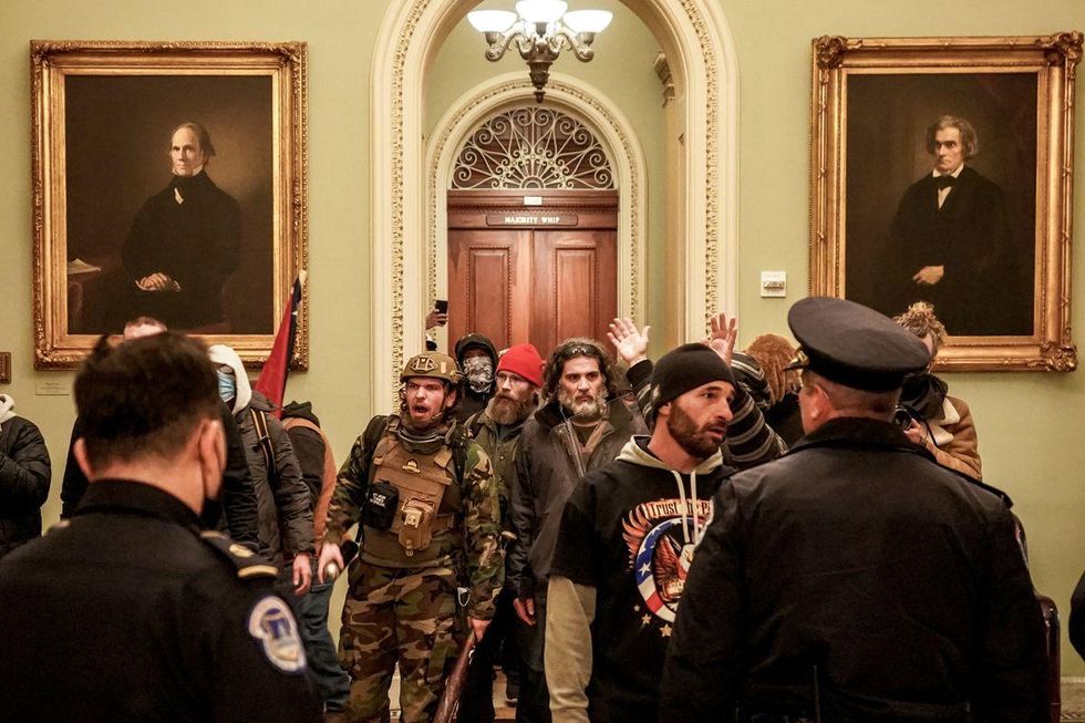 Once inside, Mr. Gieswein was photographed with another suspect, Dominic Pezzola, a former Marine and a member of the Proud Boys, who has also been charged in the Capitol attack.
