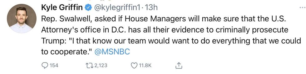 "These cowardly Senators who couldn't face up to what the President did and what was at stake for our country are now going to have a chance to give (Trump) a slap on the wrist?" Pelosi said when asked about censure during a news conference with impeachment managers after the vote. "We censure people for using stationery for the wrong purpose. We don't censure people for inciting insurrection that kills people in the Capitol."