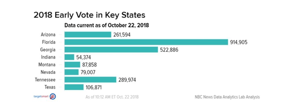 As of Oct. 22, over 5 million votes have been cast early or absentee in the 2018 midterm elections nationwide.