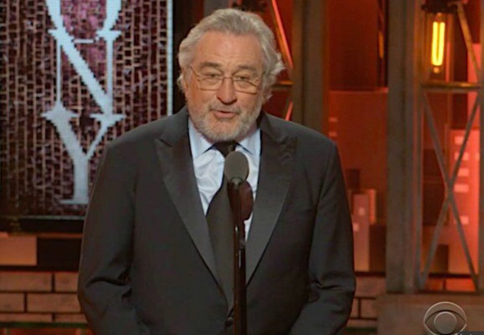 #RobertDeNiro at the #TonyAwards introducing Springsteen. F*ck Trump! It's no longer 'Down with Trump' it's F*ck Trump" -- Standing ovation from Tonys audience! Yes, @RebeccaFalcon it was blipped in the USA. https://t.co/QVIbyWUlpp
