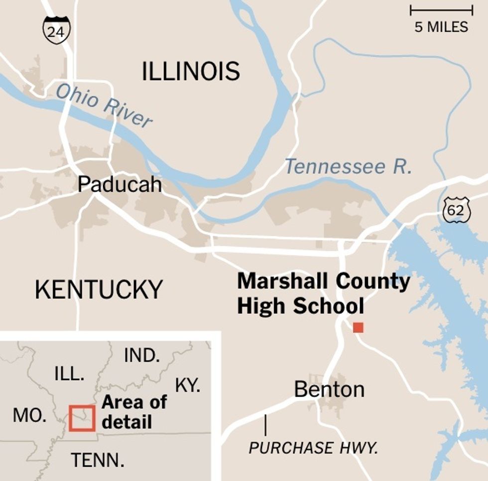 Gov. Matt Bevin of Kentucky said the gunman who opened fire Tuesday morning at Marshall County High School in Benton, near the western tip of the state was a 15-year-old student. The authorities said the student entered the school just before 8 a.m., fired shots that struck 14 people, and set off a panicked flight in which five more were hurt.