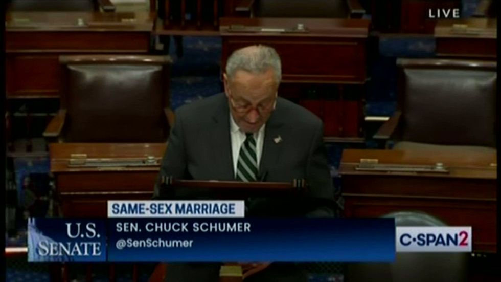 Schumer: So when some Republicans say, oh, this is unnecessary, it won't happen, remember, that's the same thing they said about roe, and look at where we are today. We should protect marriage equality now, well before the maga-controlled Supreme Court steps in https://t.co/U7JgA51ogf