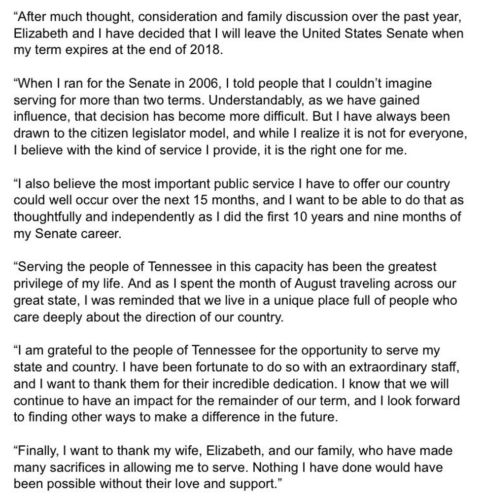.@SenBobCorker is a great friend. Somebody who made the Senate work. This is a loss for all of us. https://t.co/8AN8HtBUzB