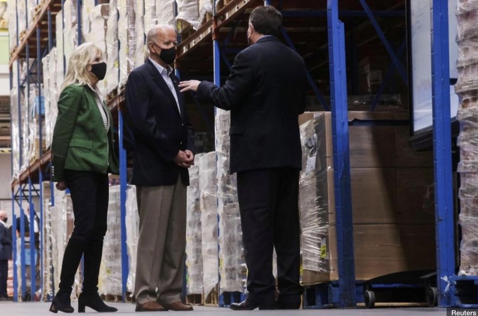 In one of his first trips since taking office in January, Mr Biden toured the Houston area with Republican Governor Greg Abbott and First Lady Jill Biden.