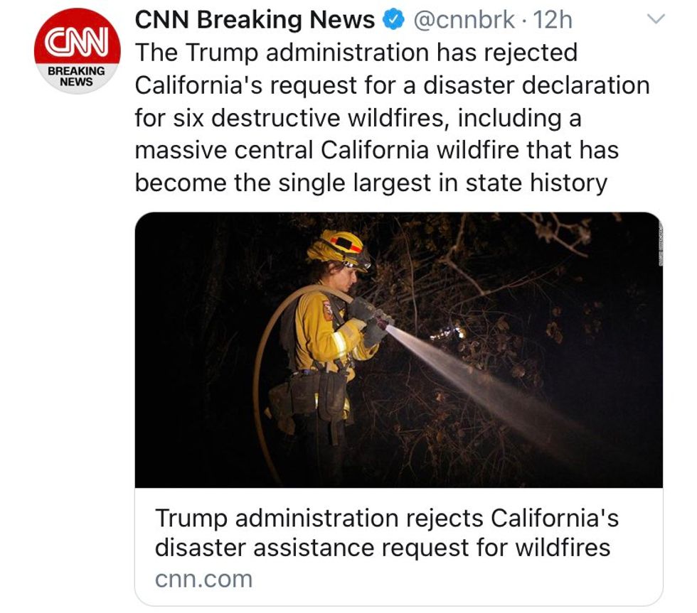The audacity of the President to come to CA for a fundraiser after denying bipartisan calls for emergency wildfire assistance. He's all for getting CA money but turns his back on our communities & first responders when they need help. It's all about him & not the American people. https://t.co/T0g2Yz5KzX