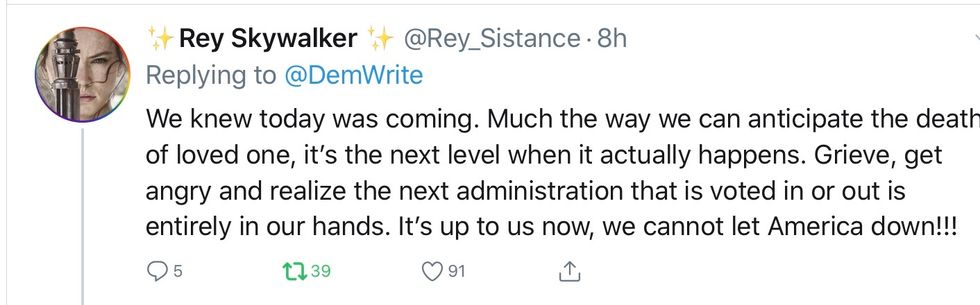 This tweet by a less prominent Tweeter summarizes how I felt yesterday. I suspect you may have felt this way too.