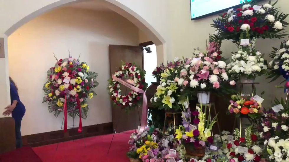 The flowers for Antonio Basco's wife who he lost in the El Paso shooting & the funeral he opened to the public b/c they had no family. The church is filling to capacity now.