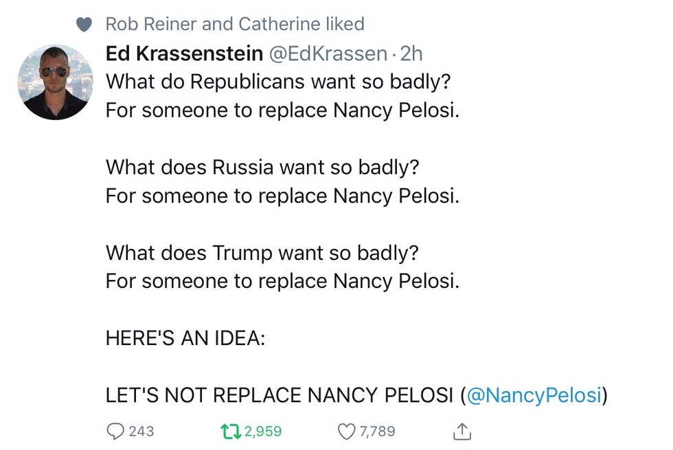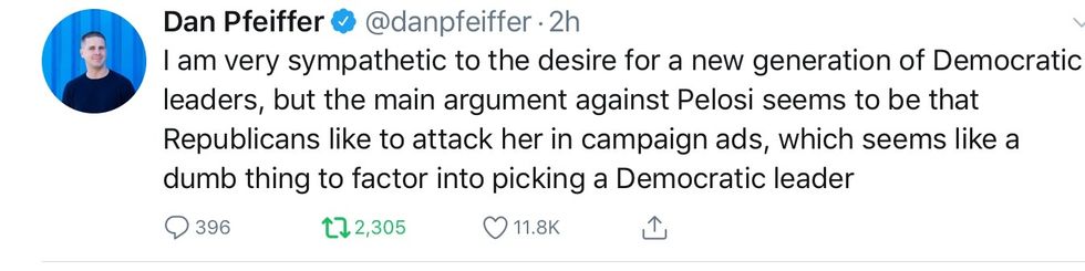 But let's return to where we started. Democrats have a complex task in front of them, figuring out how best to act as a single, determined force. They need to bring accountability to President Trump and his administration, promote their agenda for change, and position themselves for the moment, they hope two years from now, when they actually have the opportunity to implement it. At least some of them want to say to Pelosi, "Sorry, we know you're obviously the most capable person for the job and you just led us to a historic victory, but since the other side says nasty things about you, even though they don't seem to work we're going to pick someone else — anybody else, it doesn't really matter who."