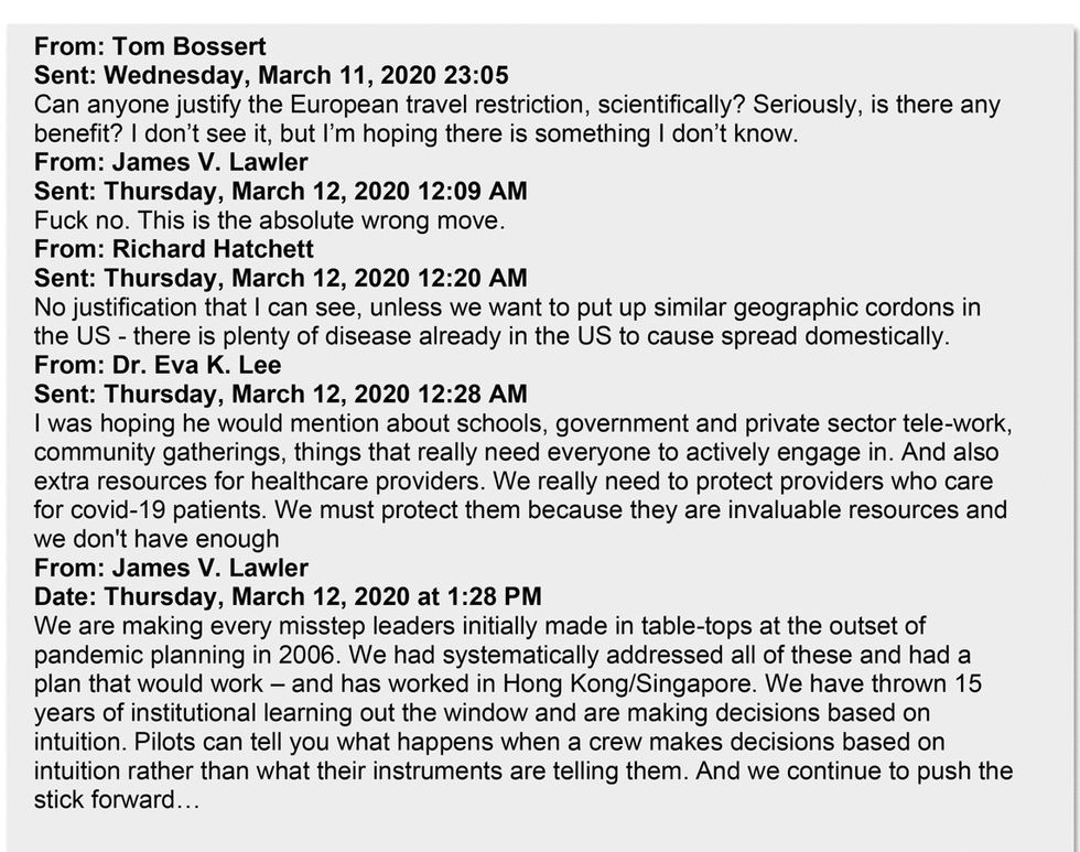 Here are key exchanges from the emails, with context and analysis, that show the experts' rising sense of frustration and then anger as their advice seemingly failed to break through to the administration, raising the odds that more people would likely die.