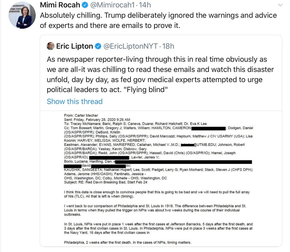 Voices4America Post Script.These are the 8 key emails whose messages were ignored by Trump that could have saved thousands of American lives. You need to share them round the world, or at least on social media. #ButHisEmails #TrumpStalledAmericansDied