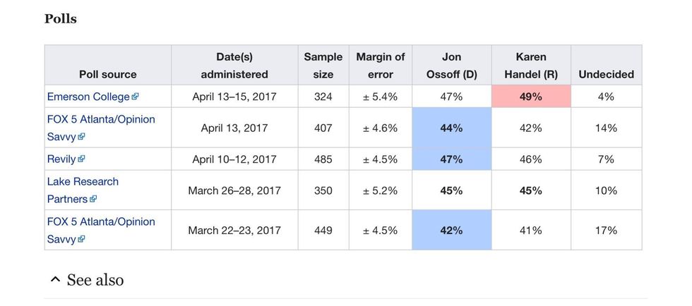 Before Tuesday's primary, polls anticipating a head to head contest between Ossoff and Hendel already showed a race that is too close to call.