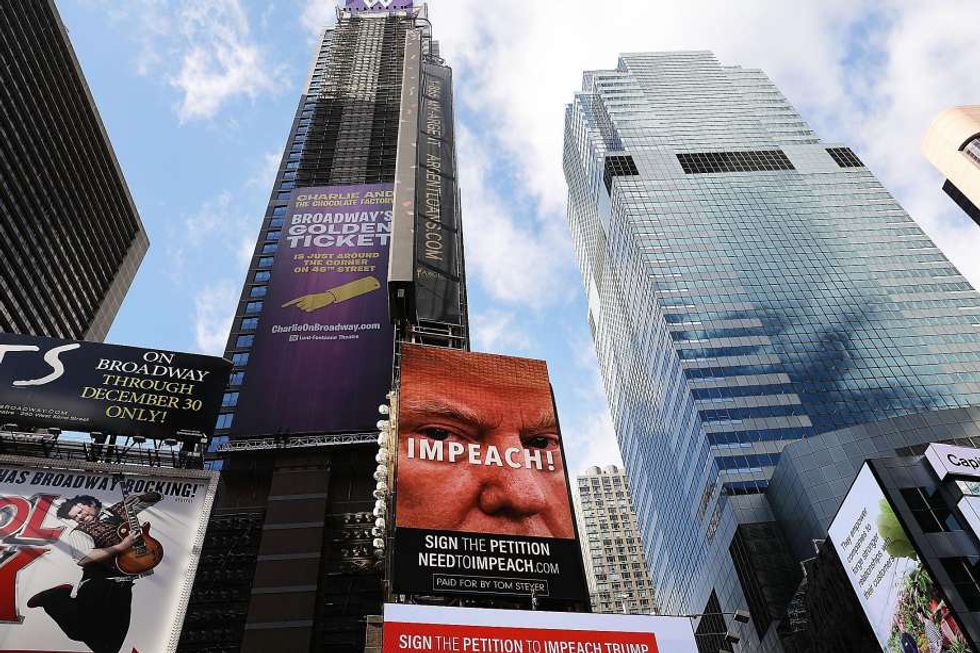 The digital billboards are paid for by billionaire environmental activist Tom Steyer's political group Need to Impeach. Steyer will spend $20 million on the billboards and television ads, which ask citizens to sign a petition urging elected officials to impeach Trump. "We legitimately feel that this is the huge issue in front of the American people and that no one is standing up for what the overwhelming number of Americans think," Steyer told Bloomberg Politics on Monday.
