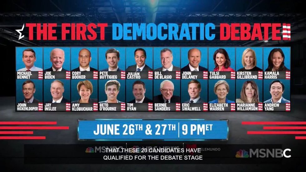 These are the 20 Democratic presidential candidates who have qualified to participate in the first 2-night #DemDebate on @NBCNews, @MSNBC and @TelemundoNews in Miami on June 26-27. 10 people on the stage each night. https://t.co/3CjwiSWu0M