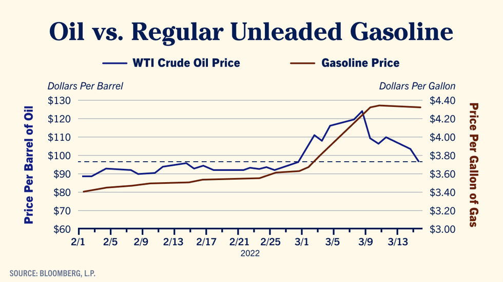 This chart says it all. Oil prices go up, gas prices go up. Oil prices go down, gas prices stay up. https://t.co/TA0l7y1Twk