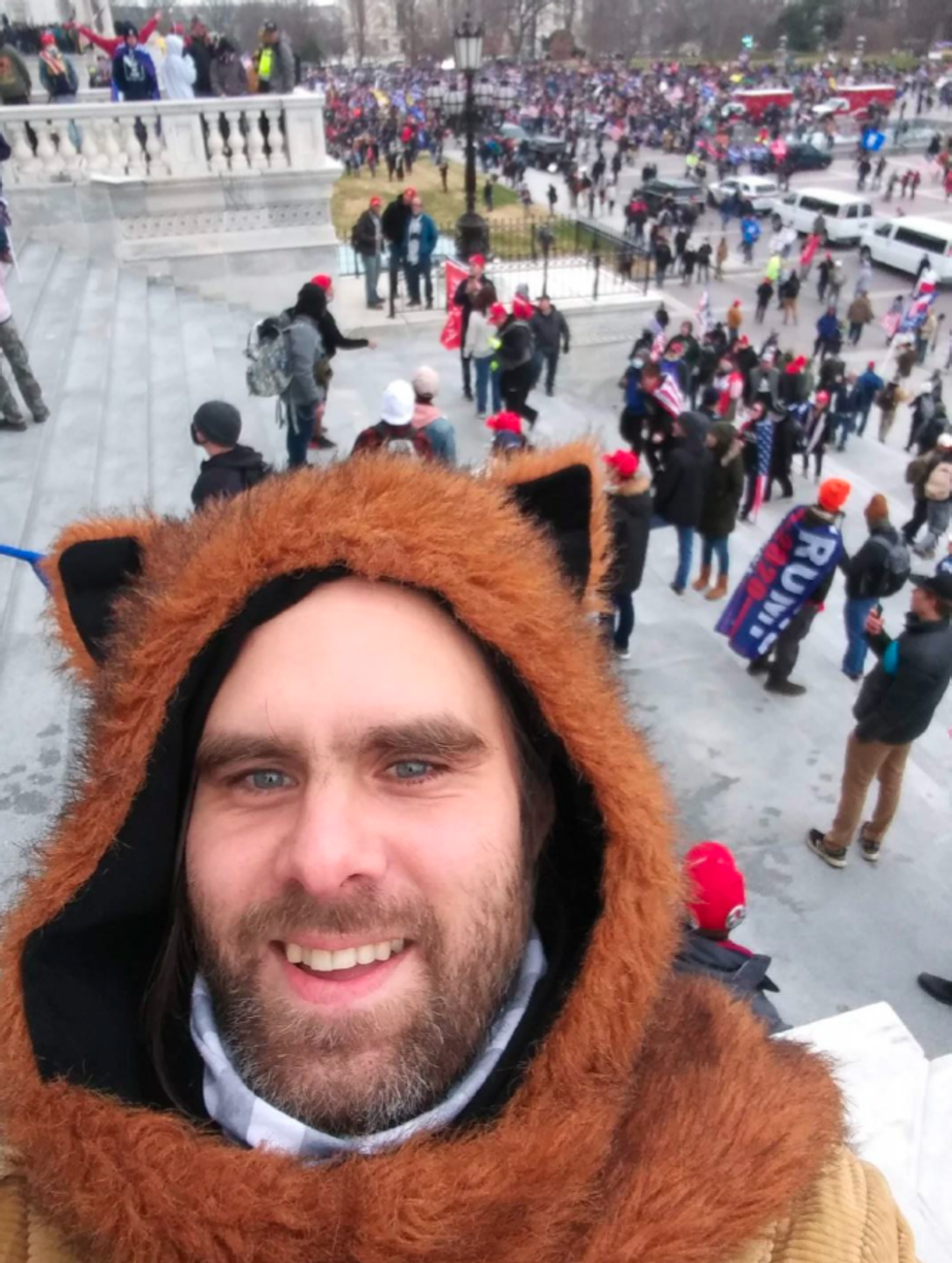 This guy in the bear hoodie is Macsen Rutledge. Yes, he stormed the Capitol. He was arrested in Lansing NY today. Congratulations to all of us - he's the 900th person arrested for Jan 6th. Let's get it to 1000 soon. https://t.co/TNISmdOB3T
