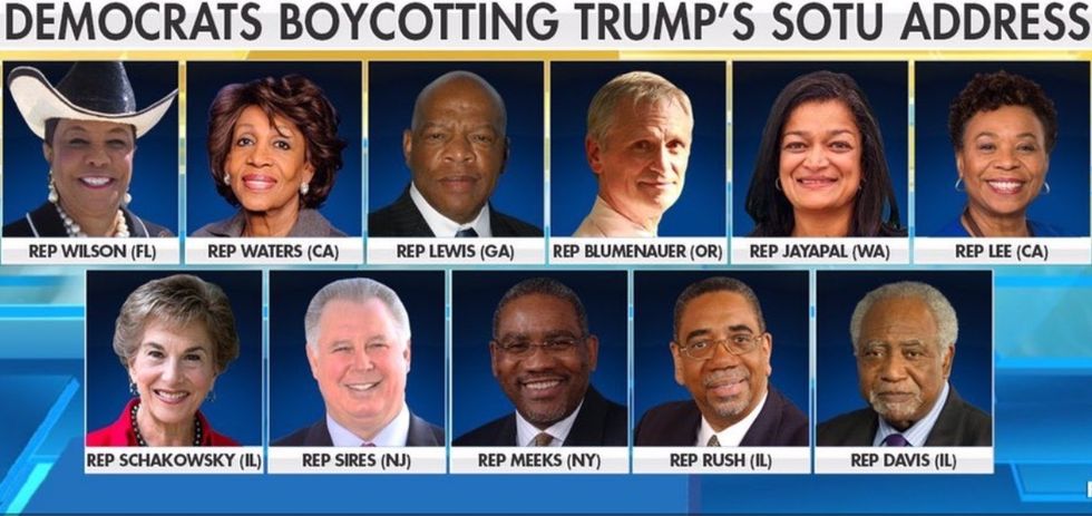 In 2017, only 2 members of the House - Reps. Maxine Waters (Dem-Calif.) and Al Green (Dem-Texas) - skipped Trump's address to a joint session of Congress, though more than 60 Democrats boycotted his inauguration.