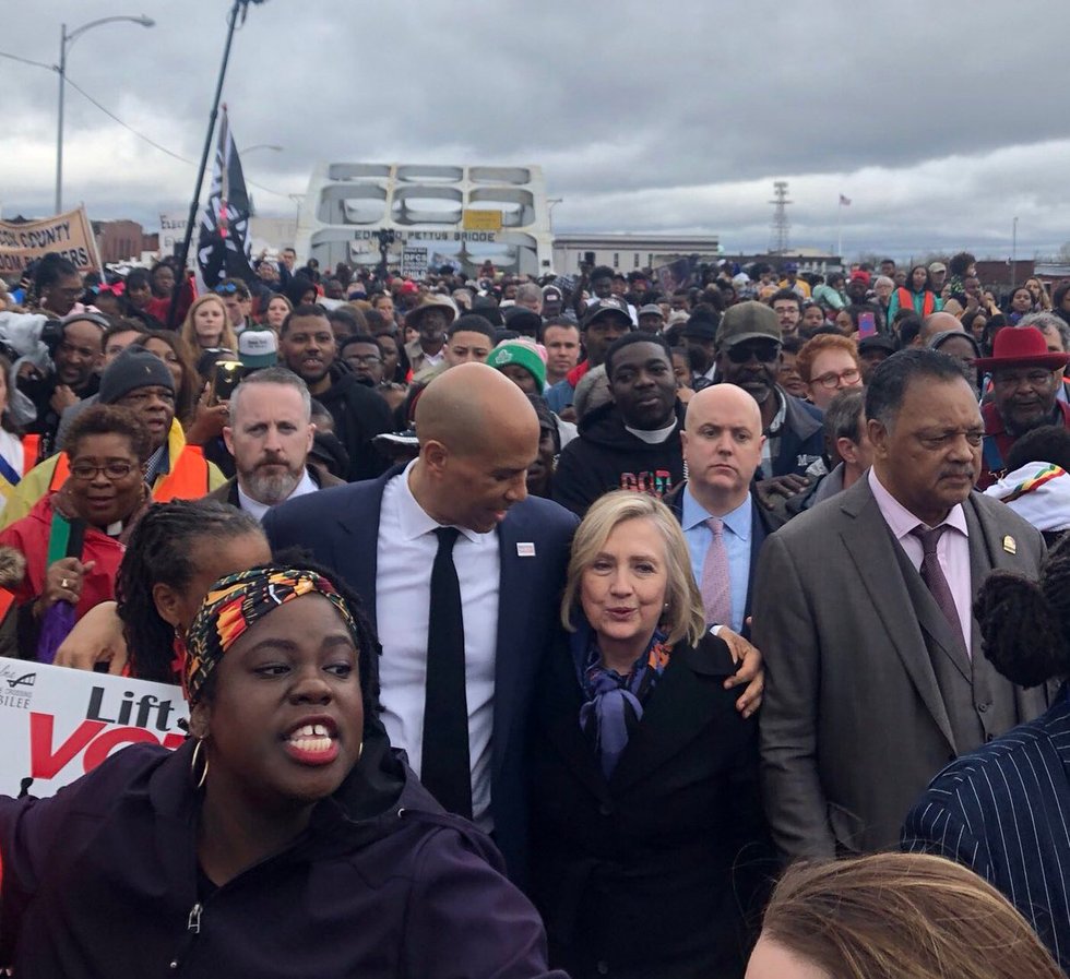 Today @HillaryClinton & @CoryBooker did something civil rights demonstrators couldn’t do more than 50 years ago —march across the Edmund Pettus Bridge. #BloodySunday https://t.co/1i84O5ZKYH