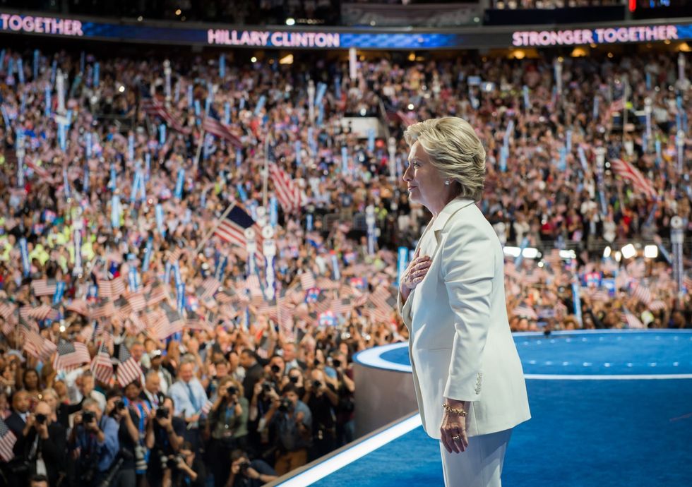 Yet there she stands in the arena, the first woman nominated by a major party to be President.