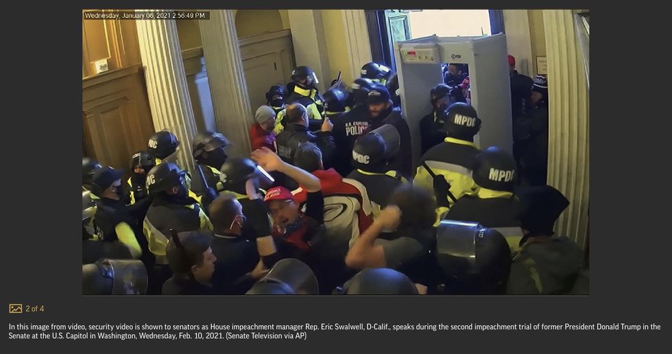 To reconstruct the siege for senators, Democrats aired never-before-seen security footage from inside the Capitol that showed the attack unfolding. Their presentation included chilling video of the rioters rampaging into the building and audio of distressed police officers who tried in vain to keep them out. "We have been flanked and we've lost the line," one frantic officer could be heard saying.