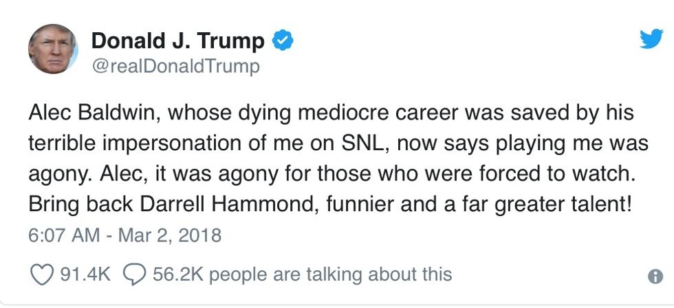 (An earlier version of the post in which Mr. Trump misspelled Mr. Baldwin's name as "Alex" was deleted.)