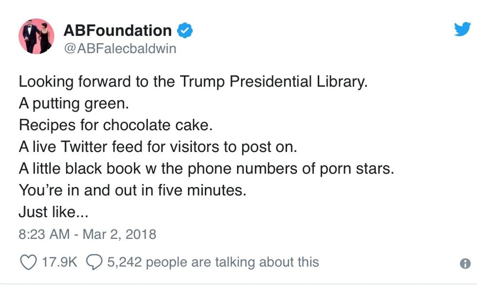 In another post, Mr. Baldwin mused about the idea of a Trump presidential library: