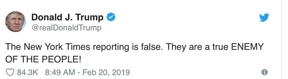 Mr. Trump has periodically returned to the expression "enemy of the people" during moments of intense criticism.And he was wrong in suggesting that the Times reporters who chronicled his attempts to meddle in investigations had failed to reach out for comment.