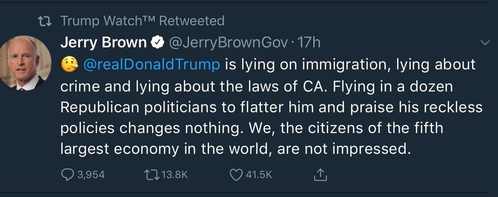 Trump's dispicable words were denounced in a statement released by Jerry Brown, California's governor who had not been present at the White House. The Governor also posted his statement on Twitter.
