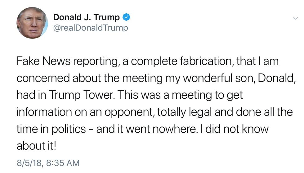 You may also remember some previous White House lies about the substance of the Trump Tower meeting as well. In specific, in July 2017, Trump and Trump, Jr. both claimed that the meeting was about "adoptions." In fact, Don Jr said as much in testimony to the Senate Judiciary Committee, and in a written statement that Trump Lawyers ultimately acknowledged Don Sr had dictated.