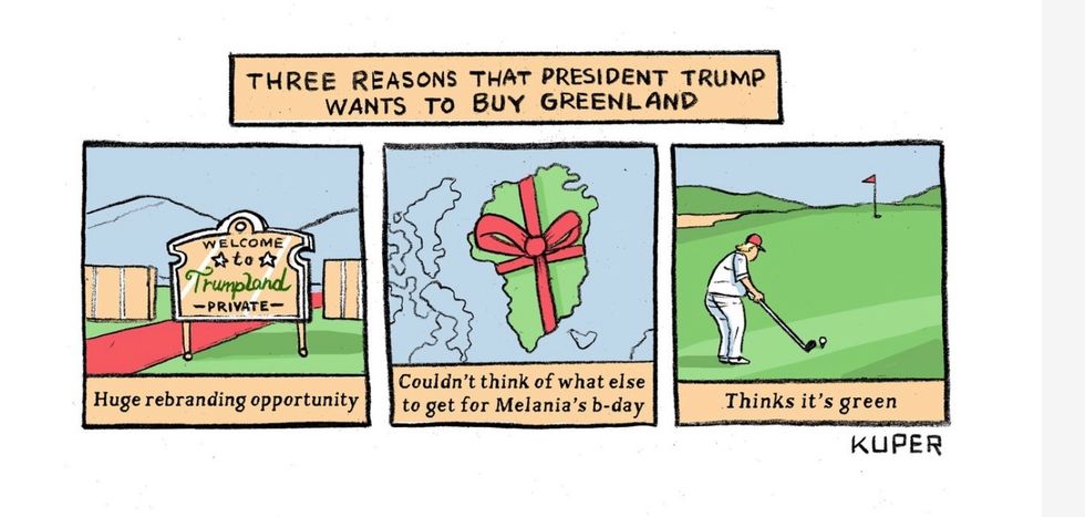 COPENHAGEN (The Borowitz Report)—After rebuffing Donald J. Trump's hypothetical proposal to purchase Greenland, the government of Denmark has announced that it would be interested in buying the United States instead.