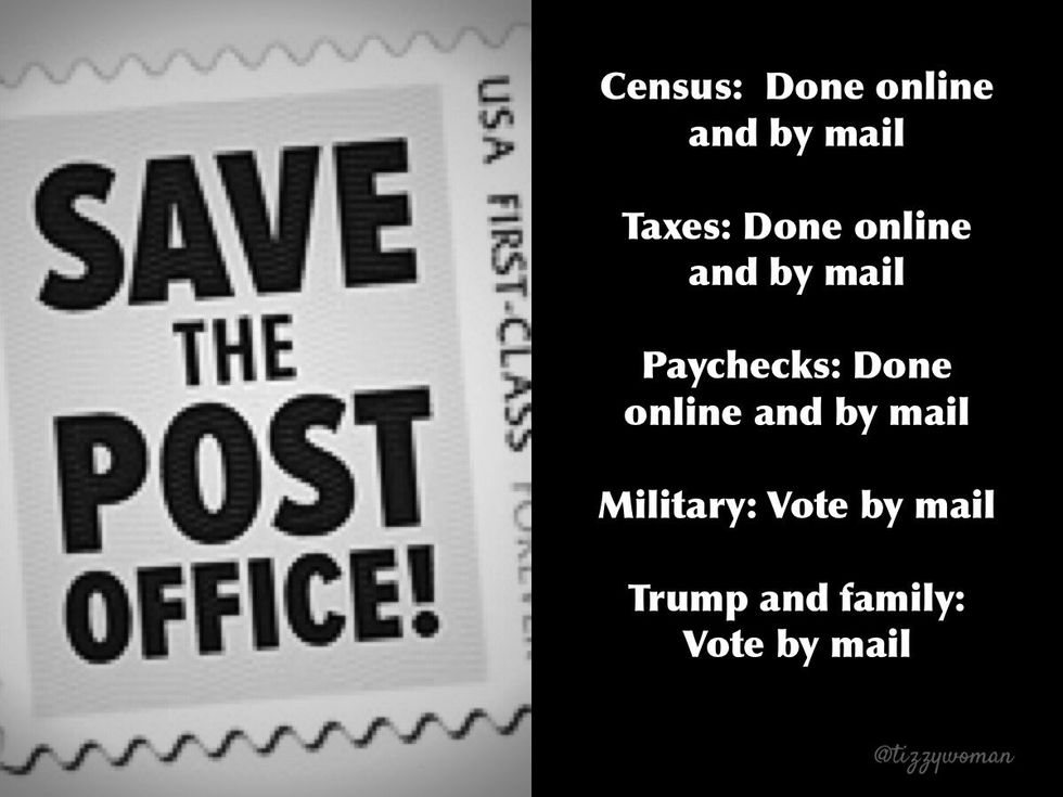 tRump is railing against @USPS funding, which will run out in September. Repeat: Run out in September. Without the USPS in October, there will be no mail in voting anywhere. Wake up. The autocracy game is full on.