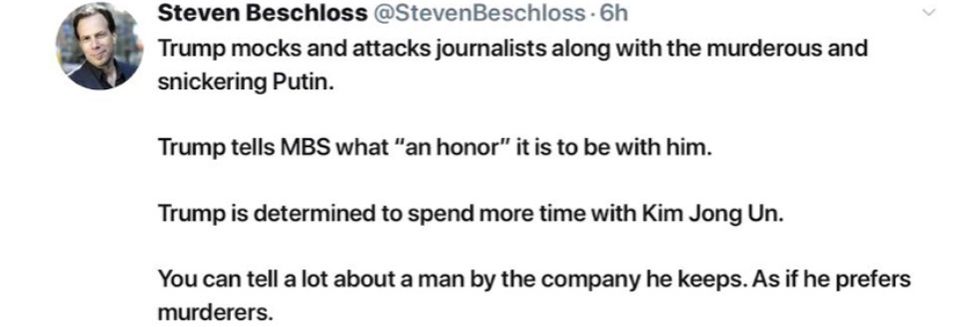 Voices4Post Script. Out of the country, Trump always throws his arms around thugs and murderers, and embraces authoritarian men and values. Disgusting at the G-20.