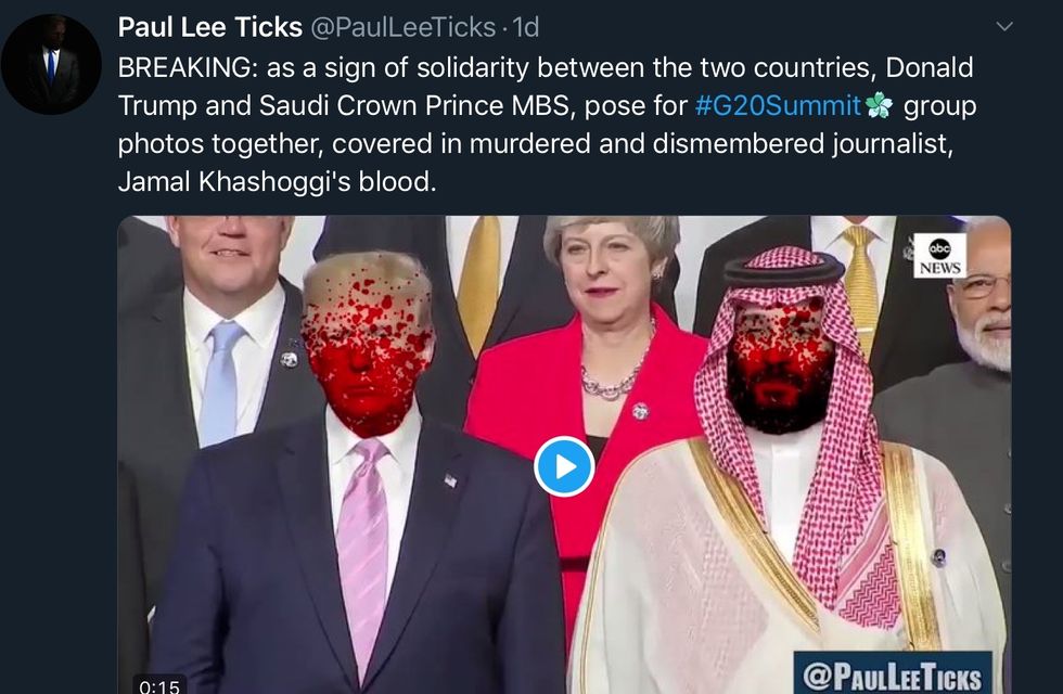 This meme expresses one reaction to Trump's praise for the Saudi Prince,