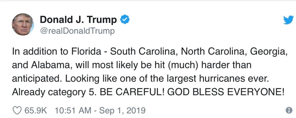 Did I mention that Trump is worried about Dorian and Alabama?