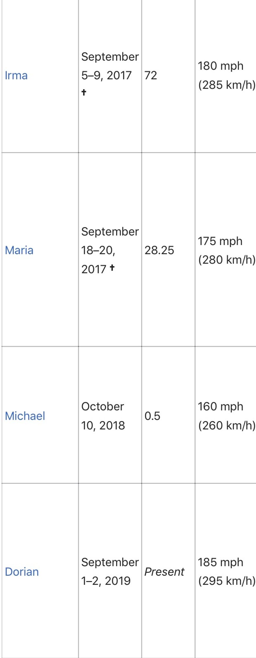 Here is a list of the 4 category 5 hurricanes during Trump’s administration. Hmm.