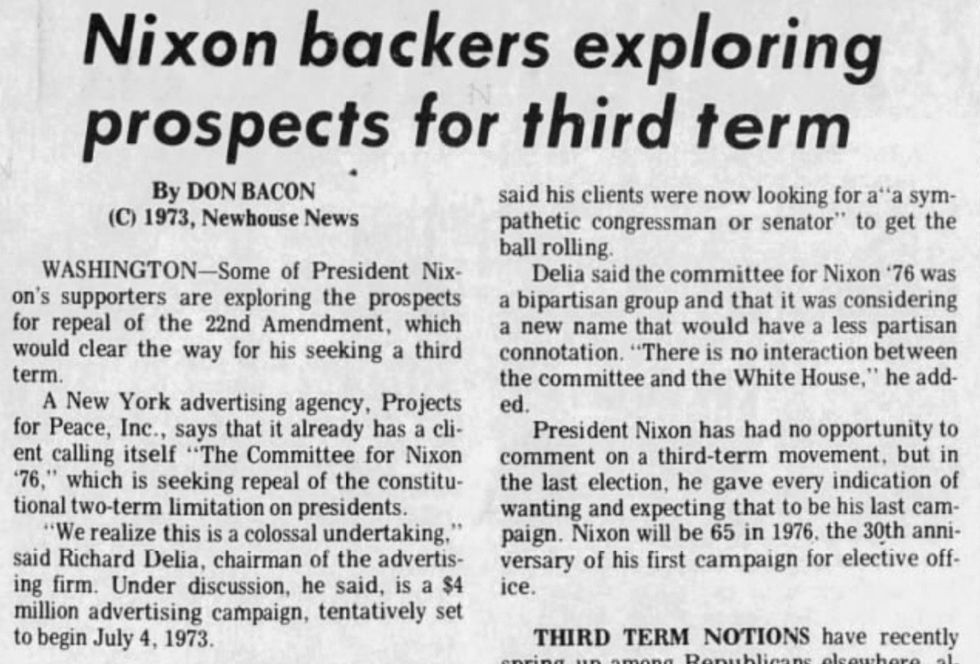 Last year, Trump also joked about doing away with term limits in a speech to Republican donors at his Mar-a-Lago estate in which he praised Chinese President Xi Jinping for doing so.