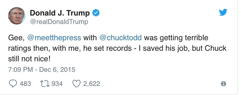 Off Twitter, of course, Trump has waged a rhetorical war on the press, threatening to sue various newspapers and calling journalists "the most dishonest human beings on Earth," all while characterizing as "fake news" any story he dislikes.
