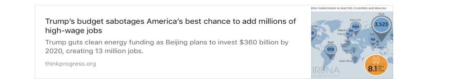 Incidentally, Trump's economic rationale for his policies is entirely bogus. This order, along with his budget, would undermine America's ability to compete economically for perhaps the biggest high-wage job-creating sector of the foreseeable future: clean energy.