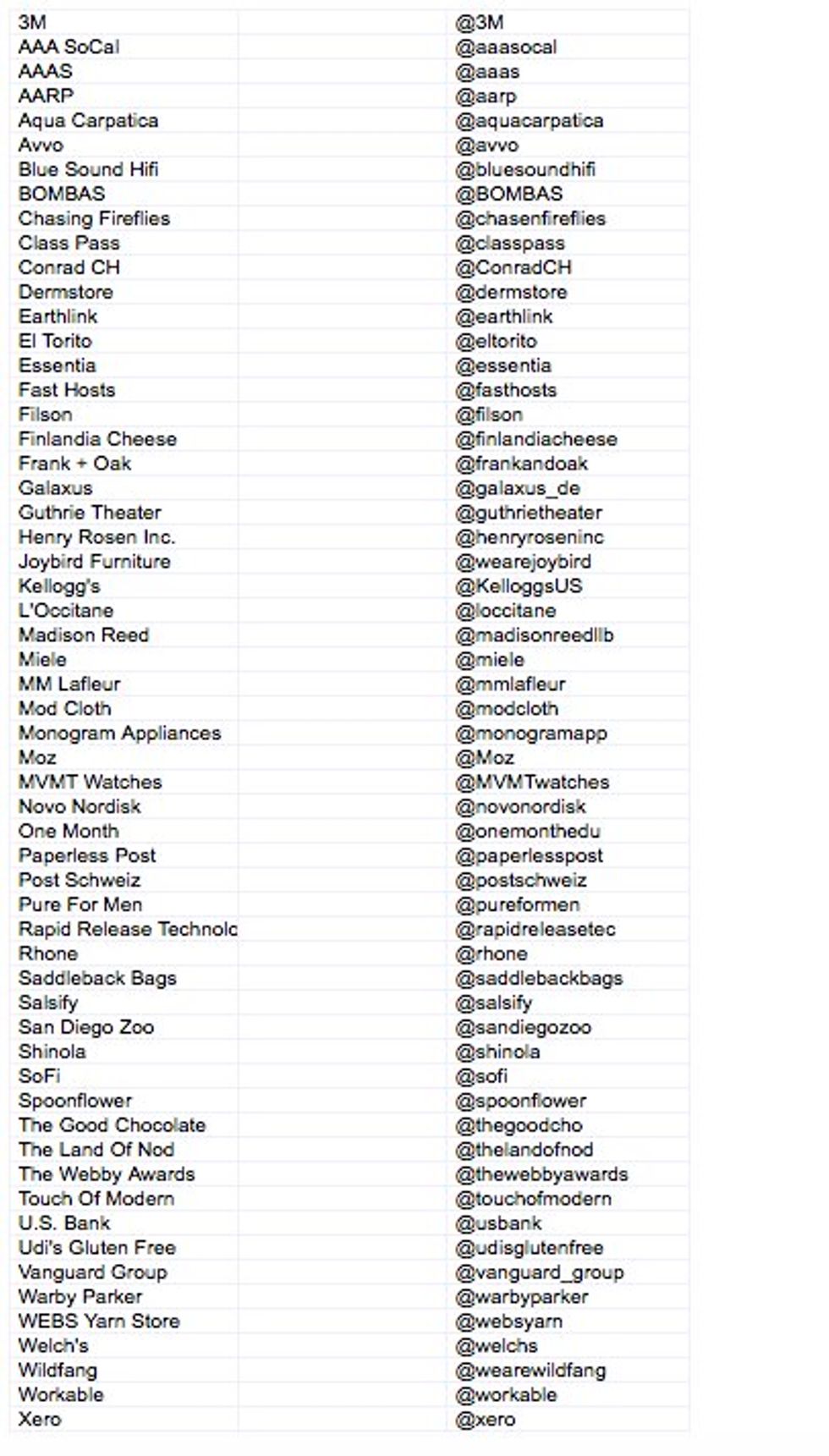 UPDATE: This is the updated list of the CONFIRMED companies who have blacklisted Breitbart. 58 in all. Let's go shopping, Giants! https://t.co/QaLy5Xwg6U