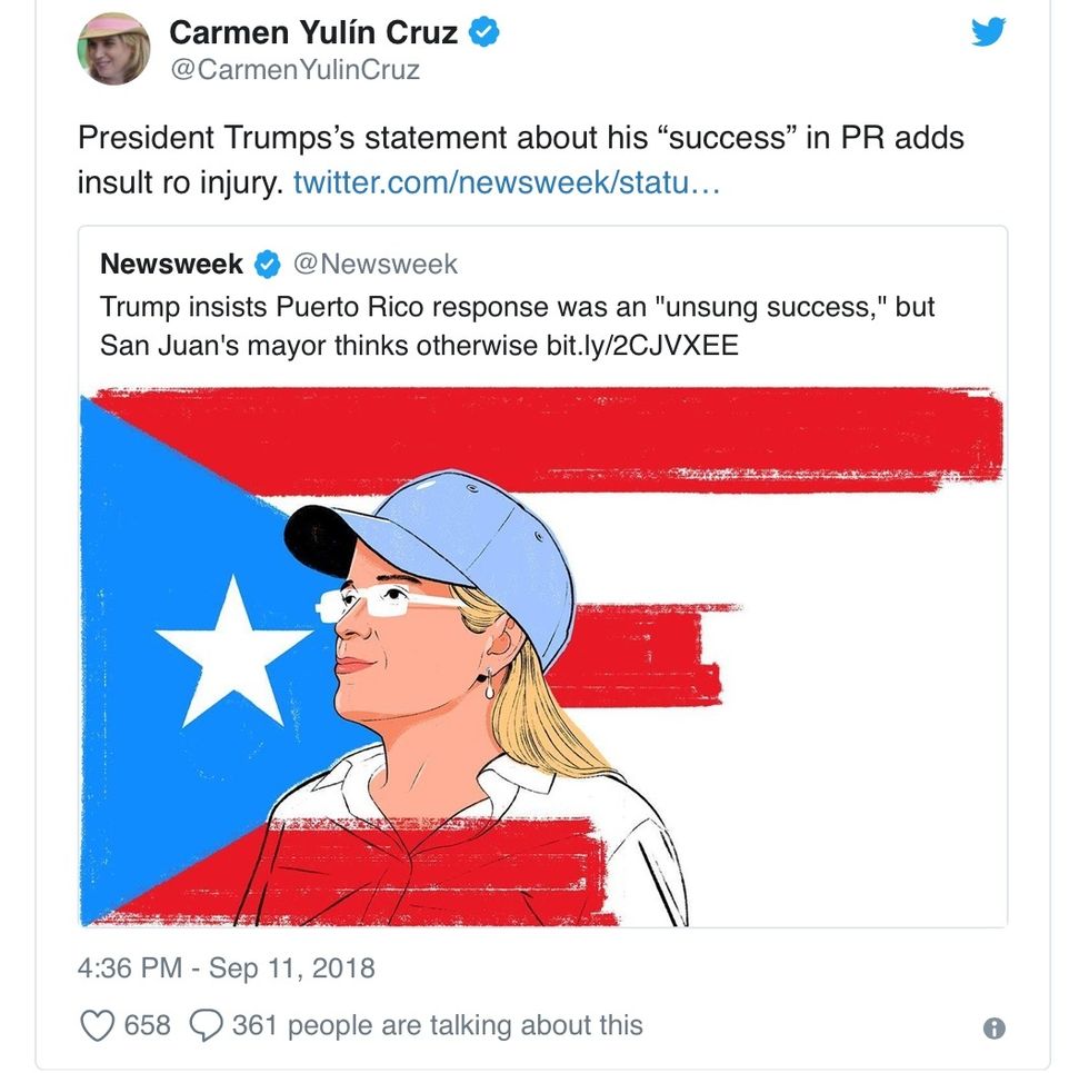 "If he thinks the death of 3,000 people is a success, God help us all," said Carmen Yulín Cruz, the mayor of San Juan, in a post on Twitter.